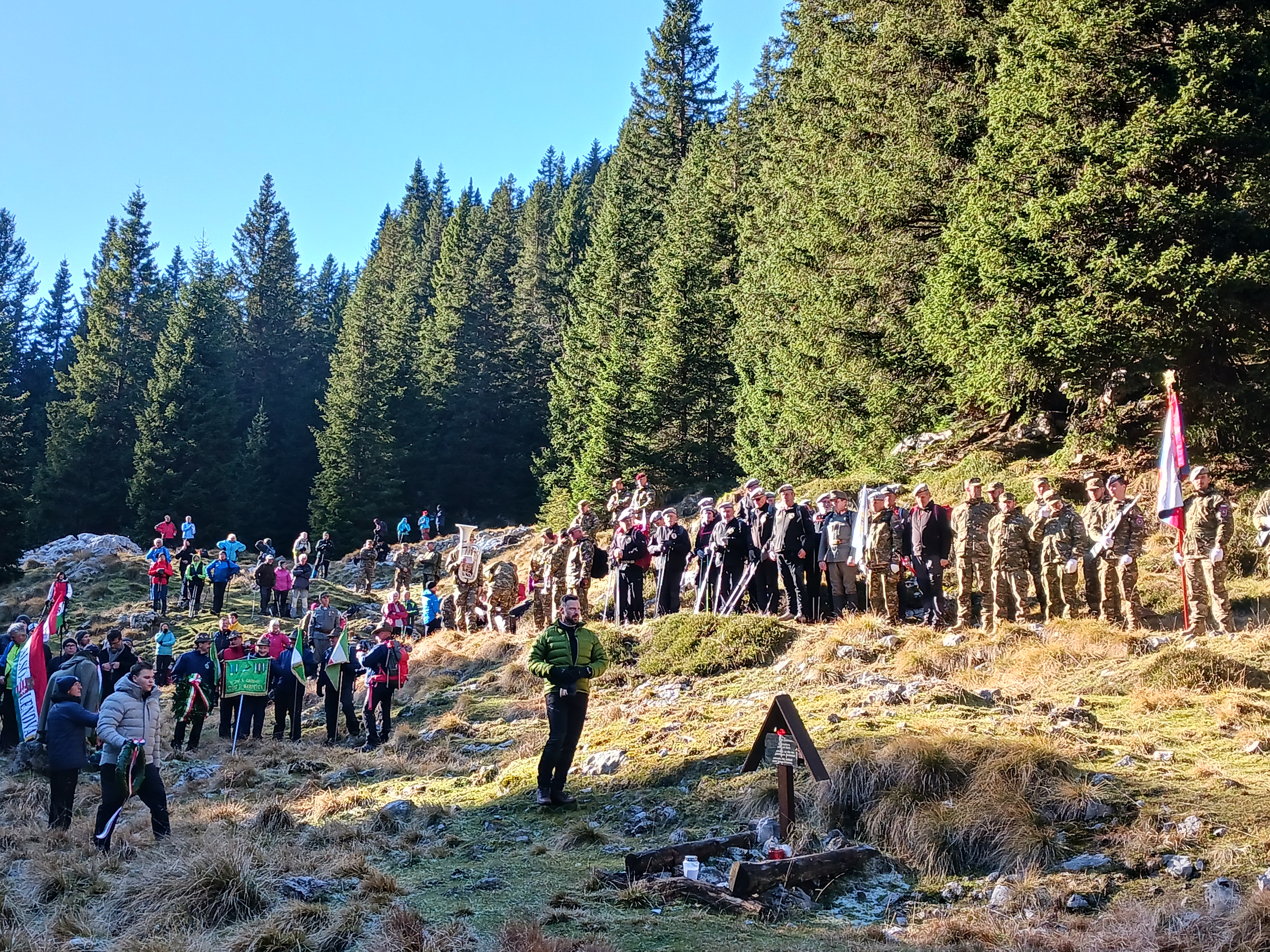 As in previous years, Ambassador Andor Ferenc Dávid and staff members of the Hungarian Embassy in Ljubljana participated in this year’s Krn Memorial Hike, which was organized to mark the anniversary of the end of World War I. During the hike, we paid tribute to the memory of the Hungarian soldiers fallen on the Isonzo Front. The Ambassador gave a speech at the Hungarian Cross, after which the participants laid wreaths under the cross in memory of the fallen soldiers.