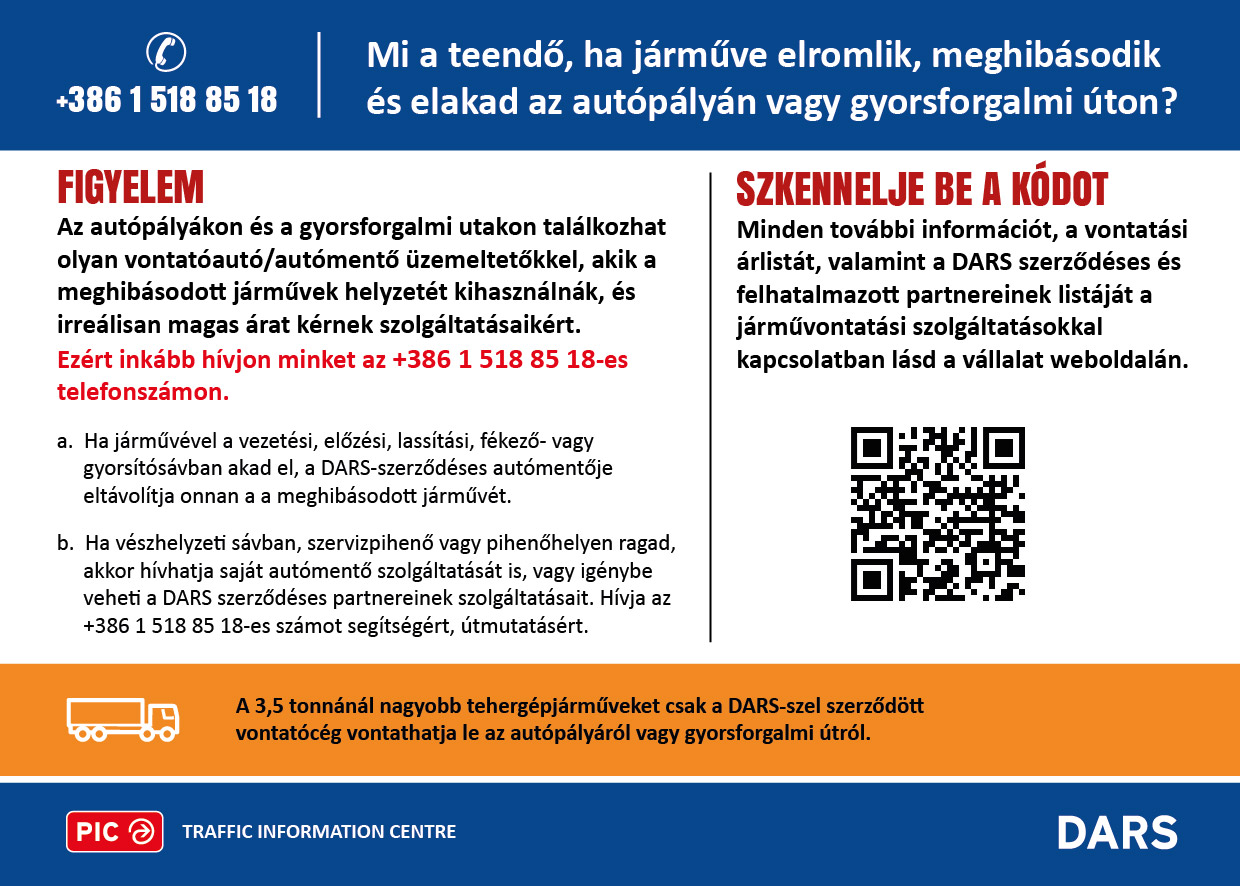 Meghibásodott gépjárműve a szlovén autópályán?